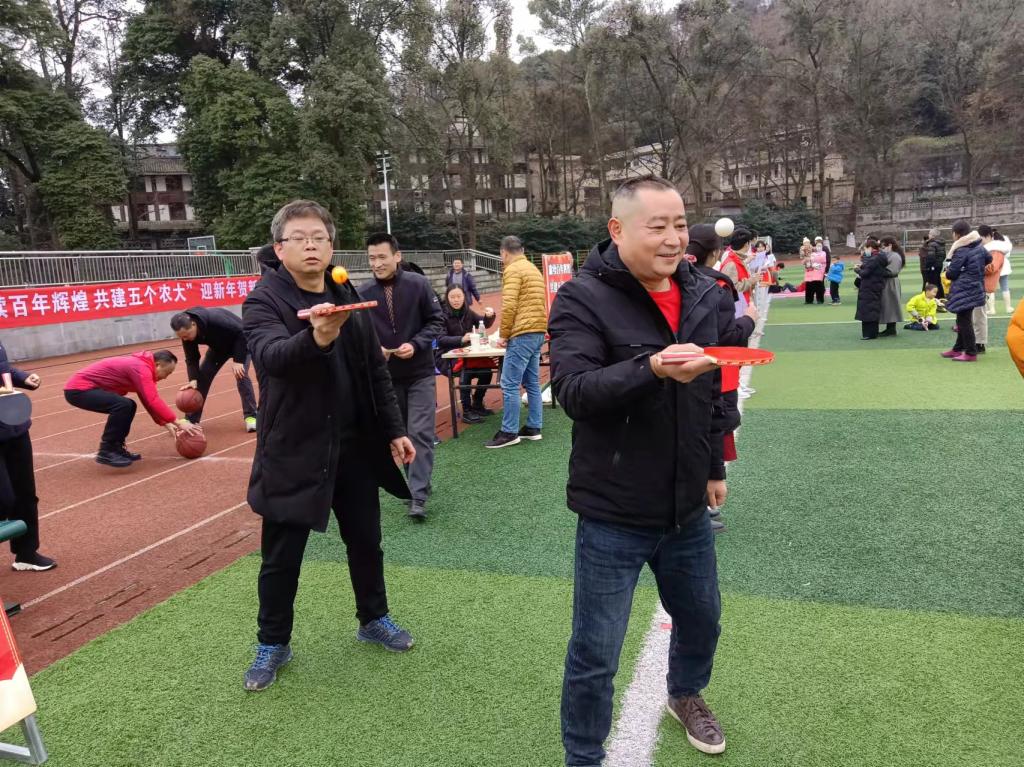 1月13日都江堰校区机关在校区操场举行“赓续百年辉煌 共建五个农大”新年工会活动,校区机关领导班子和全体教职工90余人欢聚一堂,共同迎接新年的到来。