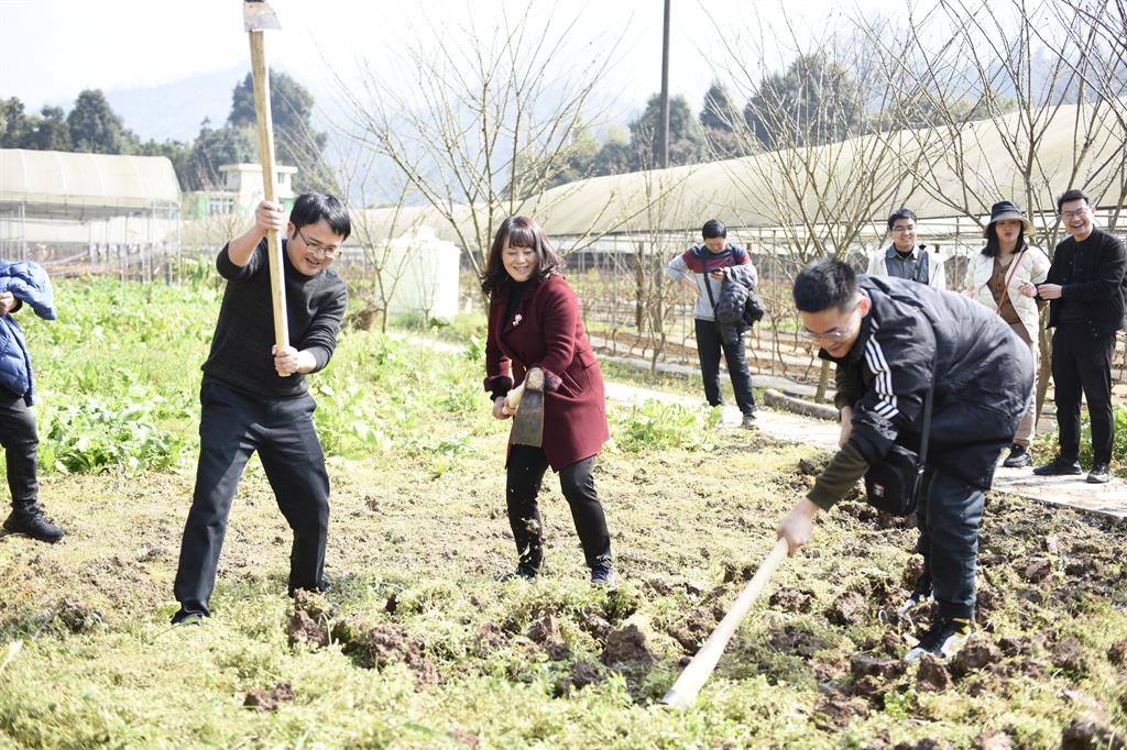 学院组织全体工会会员前往芦山县凤禾村,参观了集现代农业园区、新型农村社区、乡村旅游景区一体化建设的农旅融合乡村振兴示范点——“川西药谷·禾茂田园”大伯生态农庄。在这里,大家追忆历史足迹,重走红军路。昔日红军翻越石槽窝运输粮食,今日沿运粮道探访先辈足迹,教职工脚下的土地传递军民万众一心的深切情感。中国共产党百年征程波澜壮阔,百年初心历久弥坚。在这里,大家看到了一幕又一幕美丽乡村新画卷。禾茂中医馆内展示了金银花、马蓝、佛手柑等150余种芦山中药材;虾菜共生馆中建立有植物、微生物、鱼虾可循环有机耕种模式;“七点半议事亭”、“三味书屋”、中药材种植基地、民宿区、休闲垂钓园、田园小火车、盆景创意园、千秋一居长廊、欢乐田园等,无一不是乡村振兴的完美答卷。