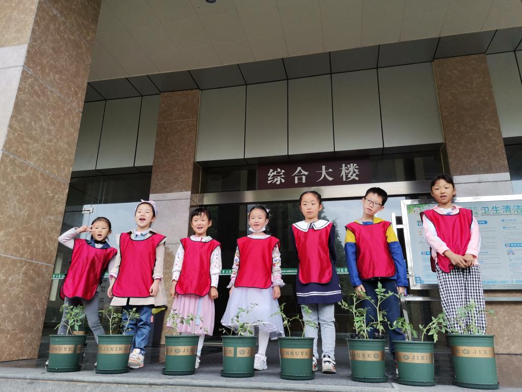 活动结束后,小朋友把种植好的西红柿带回家浇水并给幼苗取名字和量身高,记录生长过程。