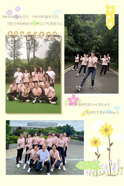 活动进行过程中,三校区成员每天利用工作间歇进行健身训练,从手忙脚乱到整齐划一,从身体酸痛到浑身清爽,大家充分体会了健身的好处。都江堰校区老师在绿道里展现英姿,雅安校区老师在操场上动力满满,温江校区老师在教学楼前挥洒汗水,校园里充满了老师们的活力身影。