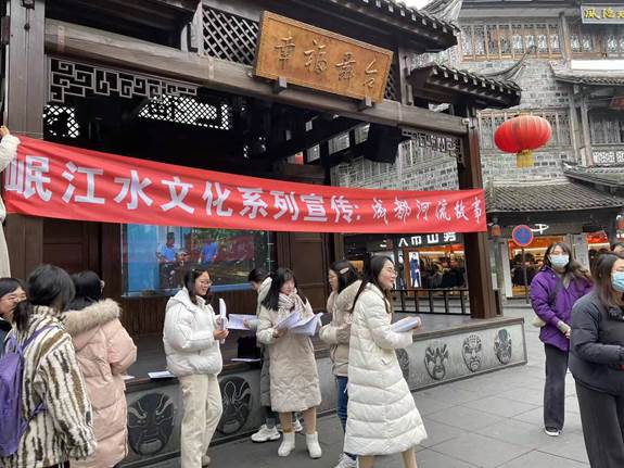 2022年1月12日,土木工程学院部门工会在都江堰市古城区开展了“岷江水文化系列宣传:成都河流故事”宣传活动。“既丽且崇,实号成都”出自晋朝诗人左思《蜀都赋》,后来在望江楼内立碑“崇丽”,这是典型的岷江水文化。成都河流故事宣传的主旨是阐述了成都“因水而兴、因水而荣、因水而困、因水而发”的历史和展望。因水而兴是指古蜀开明王朝治理成都平原水患后,成都因治水而兴起。因水而荣是指李冰建都江堰,穿成都二江,后经历代不断发展,促进了成都的经济繁荣与文化昌明。因水而困是指近代水利文明的失落和困扰。因水而发是指当代水利文明的振兴与发展。