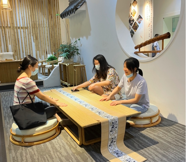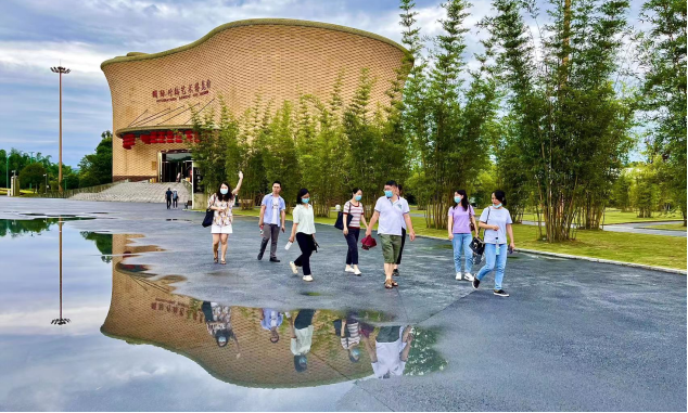 教职工一行参观了青神县竹编博物馆,青神县竹编博物馆主要收藏、展示了从古至今的竹制生产、生活用品,瓷胎竹编、竹家具、竹编艺术品系列作品。据讲解员讲述,青神竹编是国家级非物质文化遗产,其历史悠久,是早年青神先民用竹篾编“箕”养蚕,后逐步形成的一套竹编技艺。该竹编技艺将竹子分为16层,每一层再切割成竹丝进行编织,最终制作出一件工艺品。这种独特的竹编技艺,给王莹老师留下了深刻印象,王老师感叹道:“青神竹编打破了我对传统竹编的认知,竹编工艺品竟可如此精美,具有较高的审美层级。”