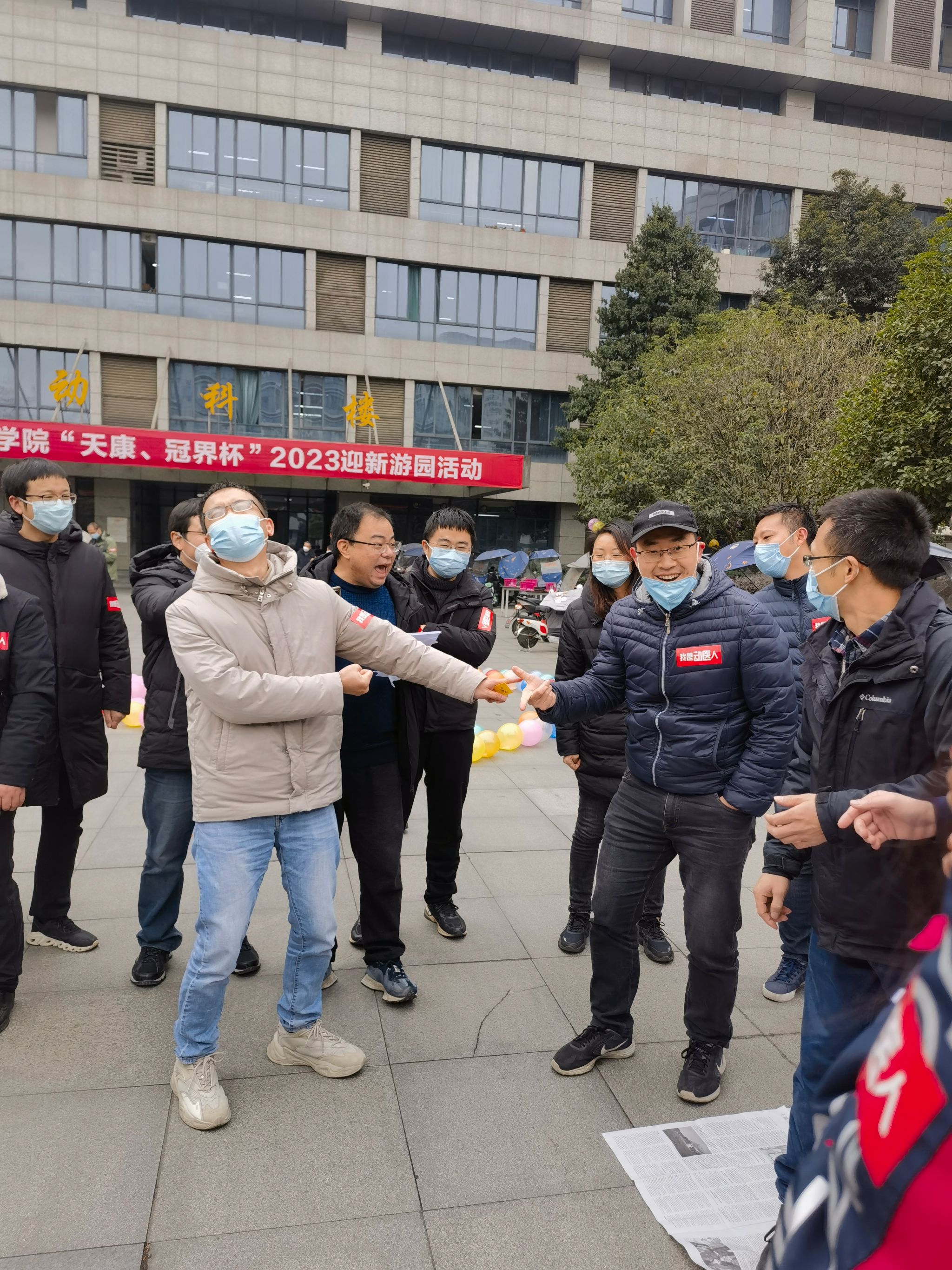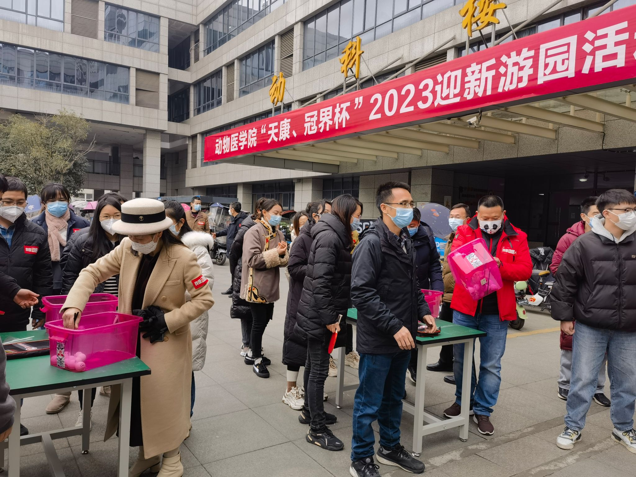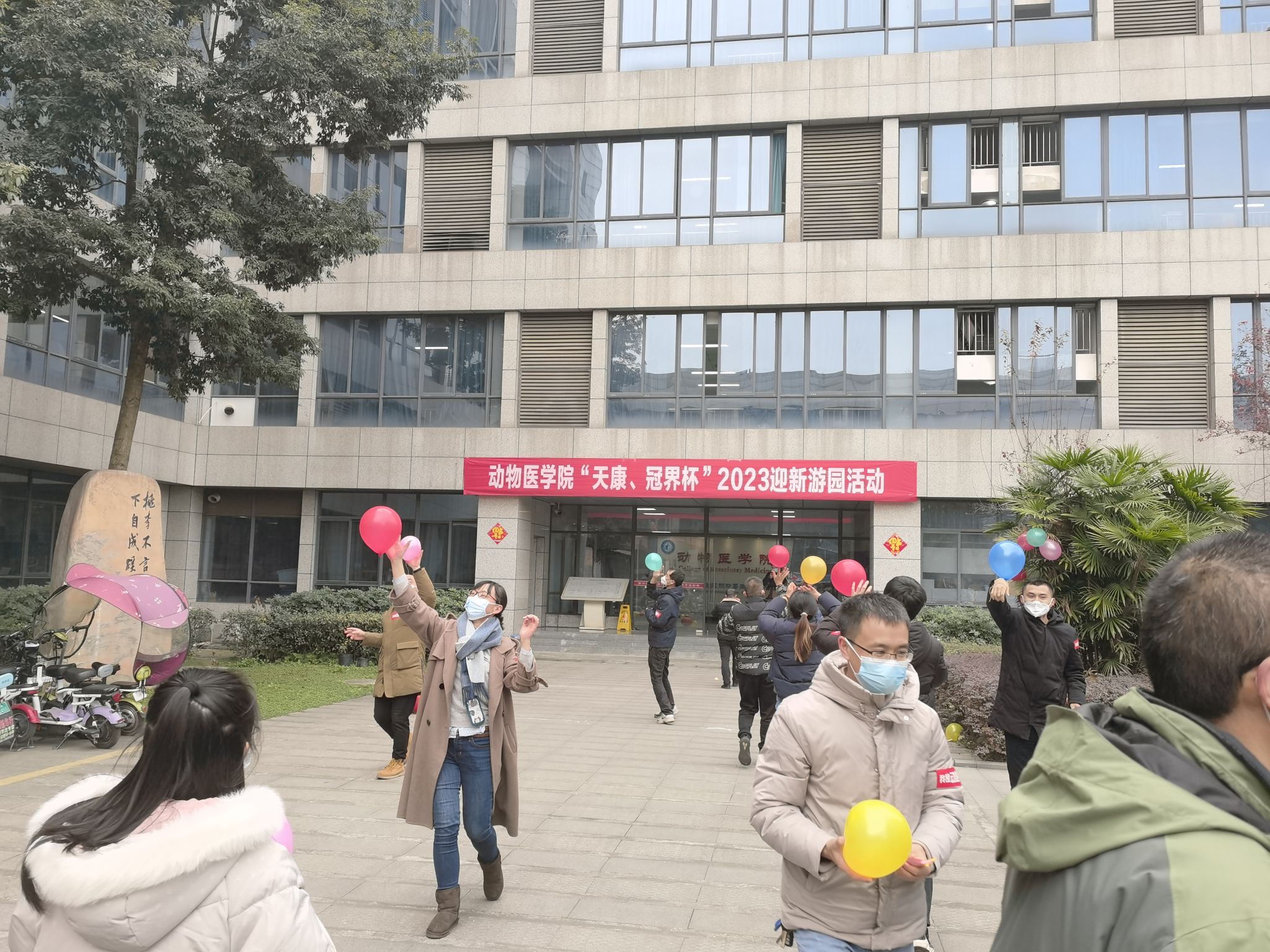 为释放教职工日常工作压力,同时增进教职工感情,2022年12月29号下午15:00,动物医学院在第六教学楼下举行了一年一度的“天康、冠界杯”2023迎新游园活动,活动主题是“玉兔捧福来,福满迎新年”。学院院长程安春、学院党委书记廖鹏携全体党政、工会、教代会负责人及全体教职员工参加了活动。