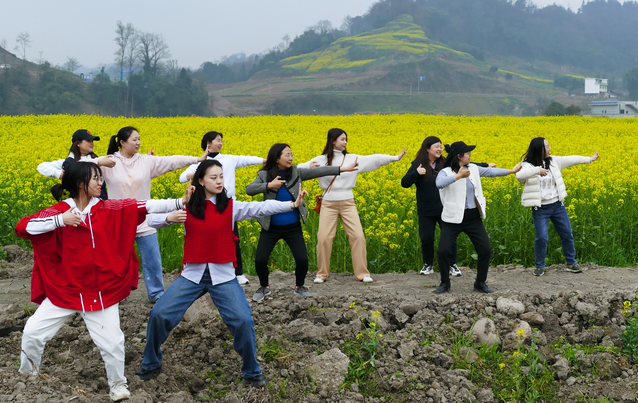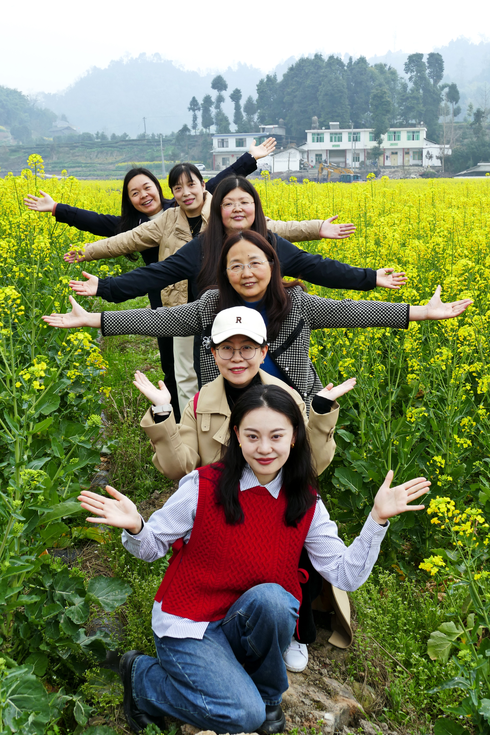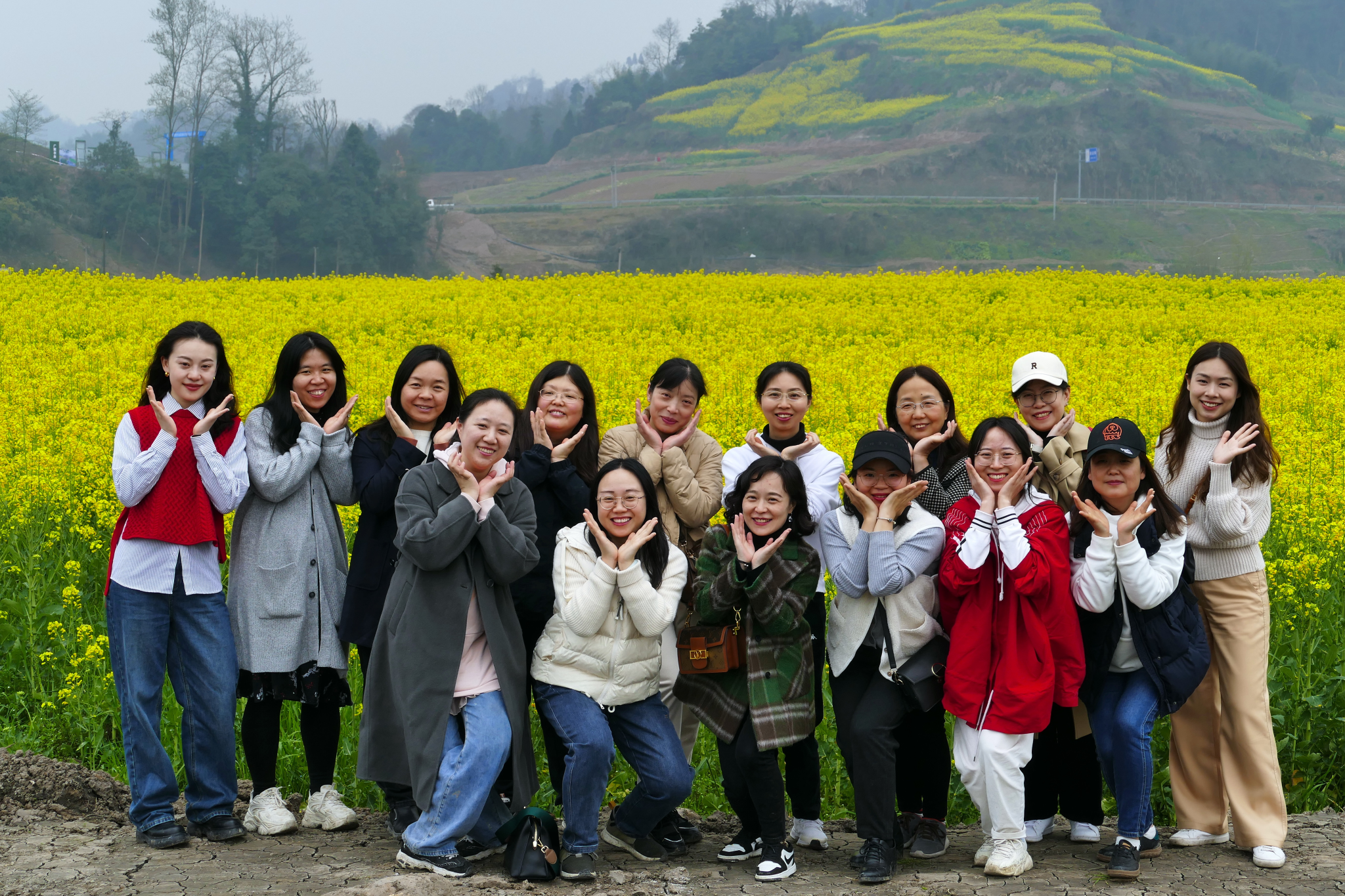 徜徉在金色的油菜花田,闻着泥土的芳香,感受春天的气息,老师们卸下工作时的疲惫,尽情享受春日的美好。