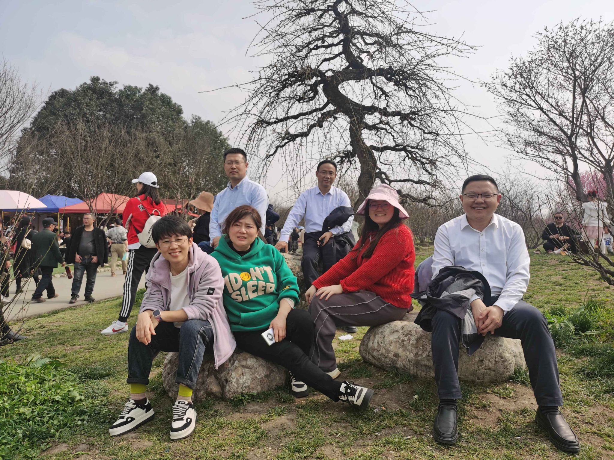 全体同志来到问花村后,漫步于梅园花径,感受登阁远望,横烟叠翠的意境,大家时而拍照留影,时而叙话歇息,时而参与问花村中的民俗文化活动,在盎然春意、欢声笑语中共度美好的节日。