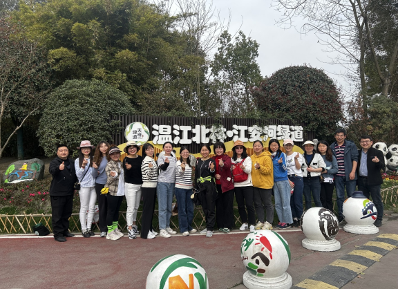 参与活动的教职工先在温江区万春绿道享受健步强身之旅。大家沿着绿道健步前行,或三五成群、或拍照留念、或驻足观景、或畅聊抒情,大家步伐轻盈、神情放松,眼含笑意,拥抱自然,好不惬意!每到一个打卡点,大家都激情饱满的打卡。