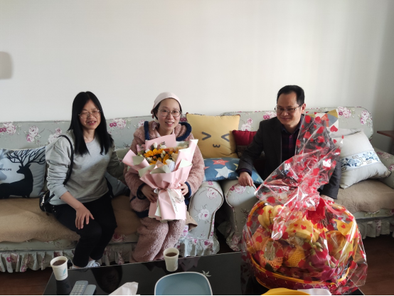 2023年4月6日下午,马克思主义学院工会代表慰问马克思主义基本原理概论工会小组生育女职工周虹老师,亲切送上领导的关怀、组织的温暖和同事们的祝福。学院工会主席颜怀坤、学院办公室孙倩老师,马克思主义基本原理教研室工会组长曾丽老师等亲切询问周老师的身体恢复情况,叮嘱她要注意保暖、注意休息,调理好身体,祝福宝宝健康成长。周老师家属对单位给予的关心和慰问非常感动,表达了感谢之情,周老师也表示一定尽快休养好身体,以饱满的精神状态投入到工作中去,为单位发展尽自己的一份力量。
