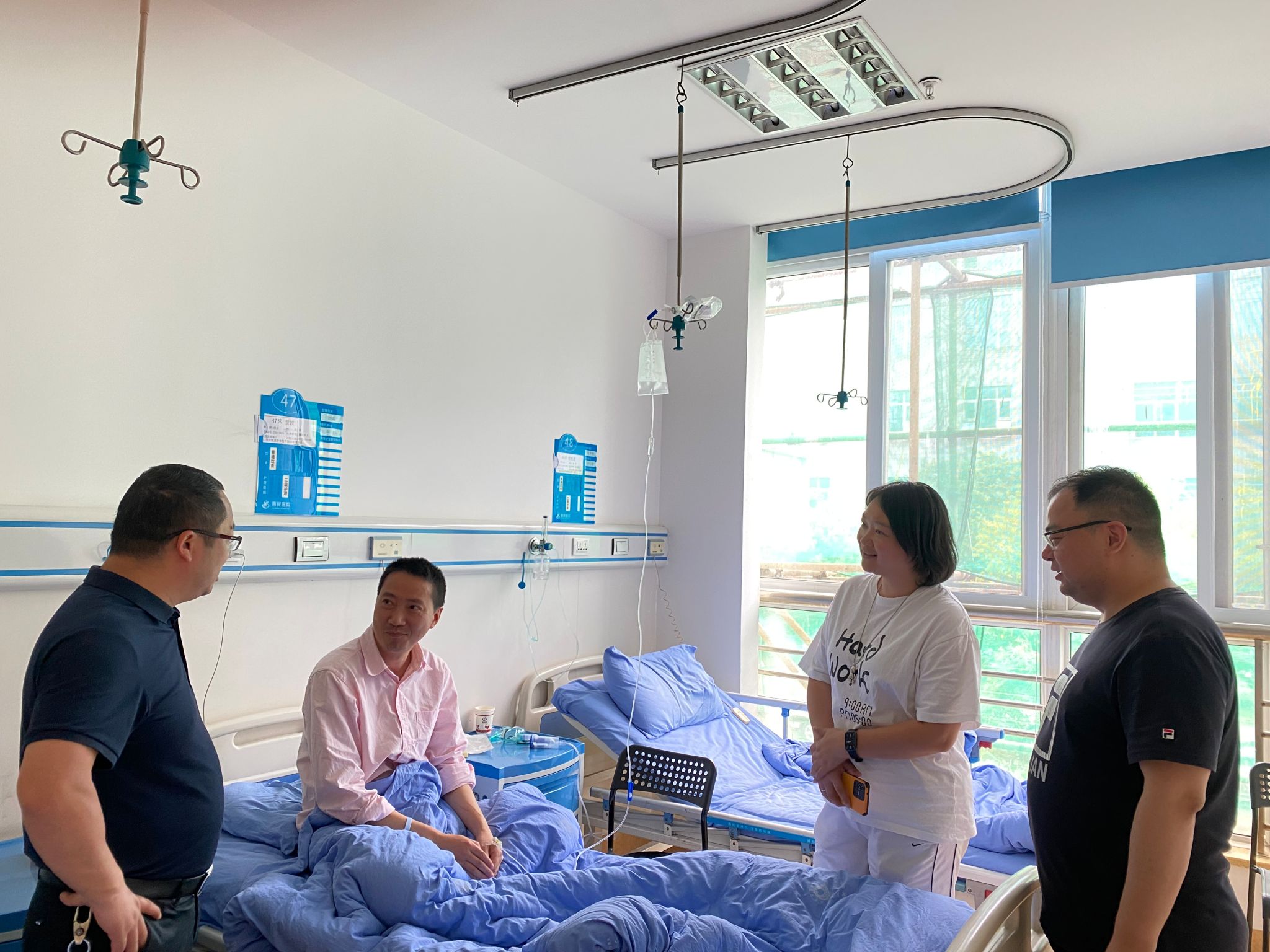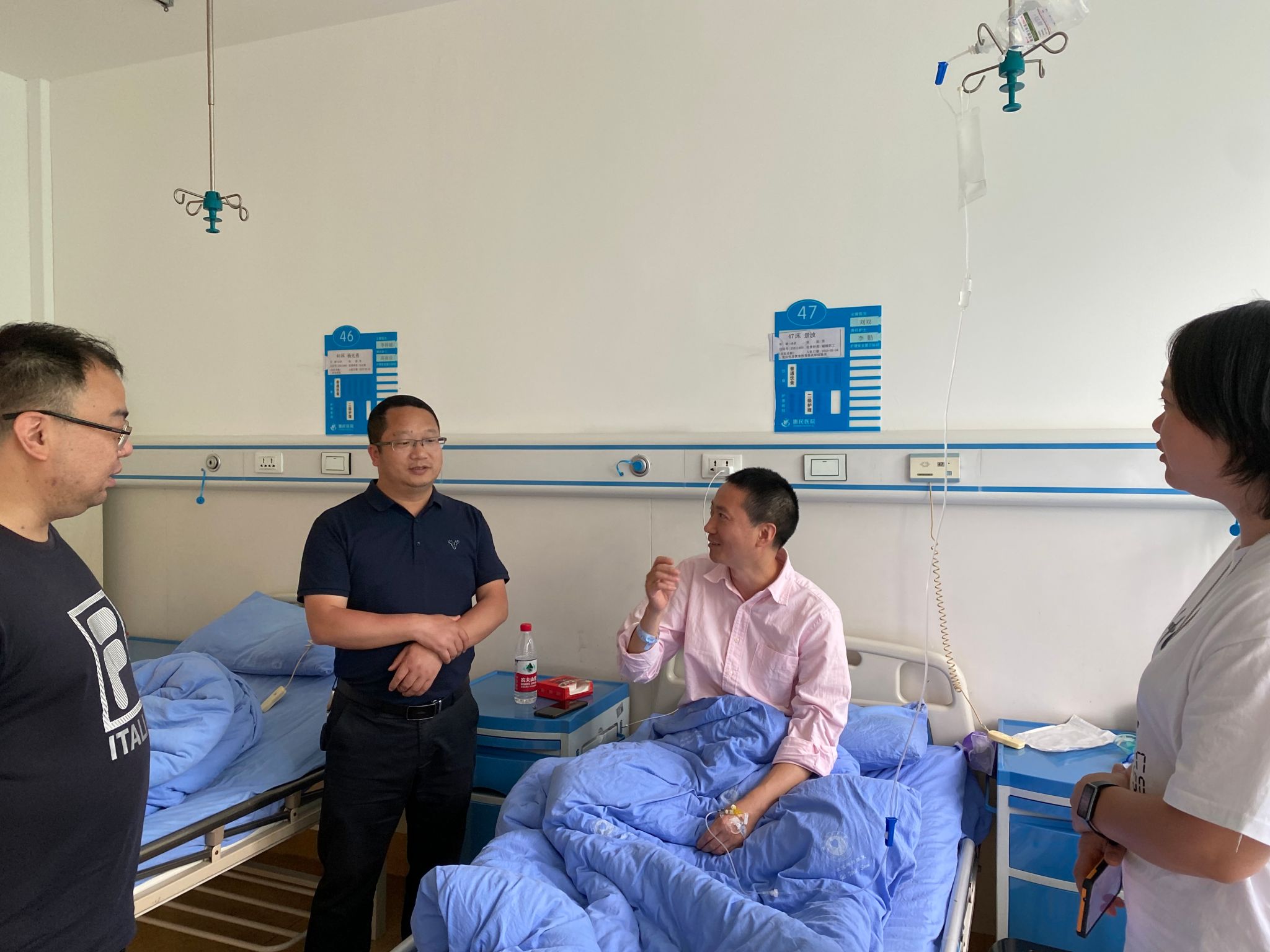 5月5日,动物医学院工会副主席叶刚,教代会主席陈正礼,学院行政办主任沈蕾及教职工代表龚杰,专程赶往惠民医院探望生病住院的景波老师。
