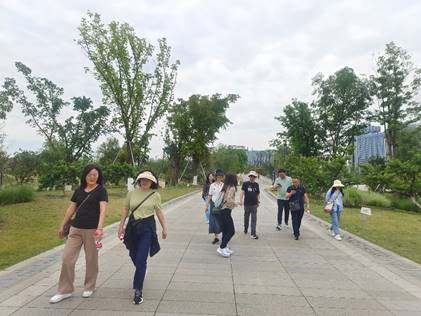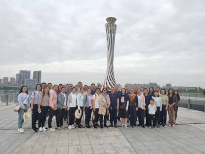 东安湖体育公园是成都大运会的主会场,已成为成都与世界互动的窗口,处处洋溢着体育文化的浓烈氛围。为感受大运会主会场的体育文化氛围,参加人员先后领略了大运会博物馆、火炬塔、主体育场馆、小球场馆、桃源驿、银沙驿等景观设施。随后,参加人员分组沿着自己选择的环湖绿道路线进行了健步走活动。各组成员精神抖擞、身姿矫健,积极地投入到大自然的怀抱中,享受着健步走带来的激情活力。经过近1个半小时的行走,参加活动老师的微信步数都达到了5000步以上。学院党委书记何桦为教职工颁发了精美的纪念品。