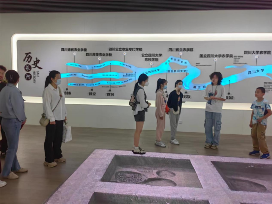 活动在解说员的引导下有序开展,家长与孩子们被校史馆浓厚的历史文化气息所吸引,依次参观序厅、历史厅、红色文化厅、发展厅、科研成果厅、社会服务厅等,了解了我校办学历史、英烈校友、学科专业、师资力量、科研成就、对外交流等基本情况,在一块块图文并茂展板及一件件历史展品中,感受川农大百年积淀与丰硕成果,感叹其曲折的发展历程,进一步体会“爱国敬业 艰苦奋斗 团结拼搏 求实创新”的“川农大精神”。同时,一项项优异成绩,激励着孩子们勤奋向上,努力向优秀校友看齐。在参观过程中,家长和孩子们不时与解说员交流互动,整个氛围轻松、愉悦。雅安校区除参观校史展览馆,解说员还带领亲子们参观了动物标本馆。种类丰富、活灵活现的动物们激发了小朋友的浓厚兴趣,并仔细聆听了动物科普知识。