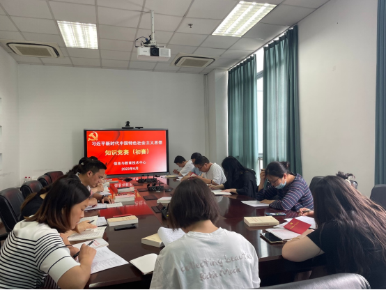 深入学习贯彻习近平新时代中国特色社会主义思想,认真学习领会主题教育的学习要义,把握“学思想、强党性、重实践、建新功”的总要求,坚持学思用贯通、知信行统一,中心直属党支部、分工会联合举行了主题教育知识竞赛。竞赛分为初赛和决赛两轮,全体党员和职工参加初赛,初赛为笔试,于6月6日分校区和小组举行。全体职工通过书面答题计算最终成绩,根据初赛成绩高低排出前50%进入决赛。为了增加大家对主题教育相关知识的学习领会,在初赛和决赛期间穿插了复习领会和读书会等阶段,旨在让大家巩固和加深对主题教育相关知识的理解和贯通。
