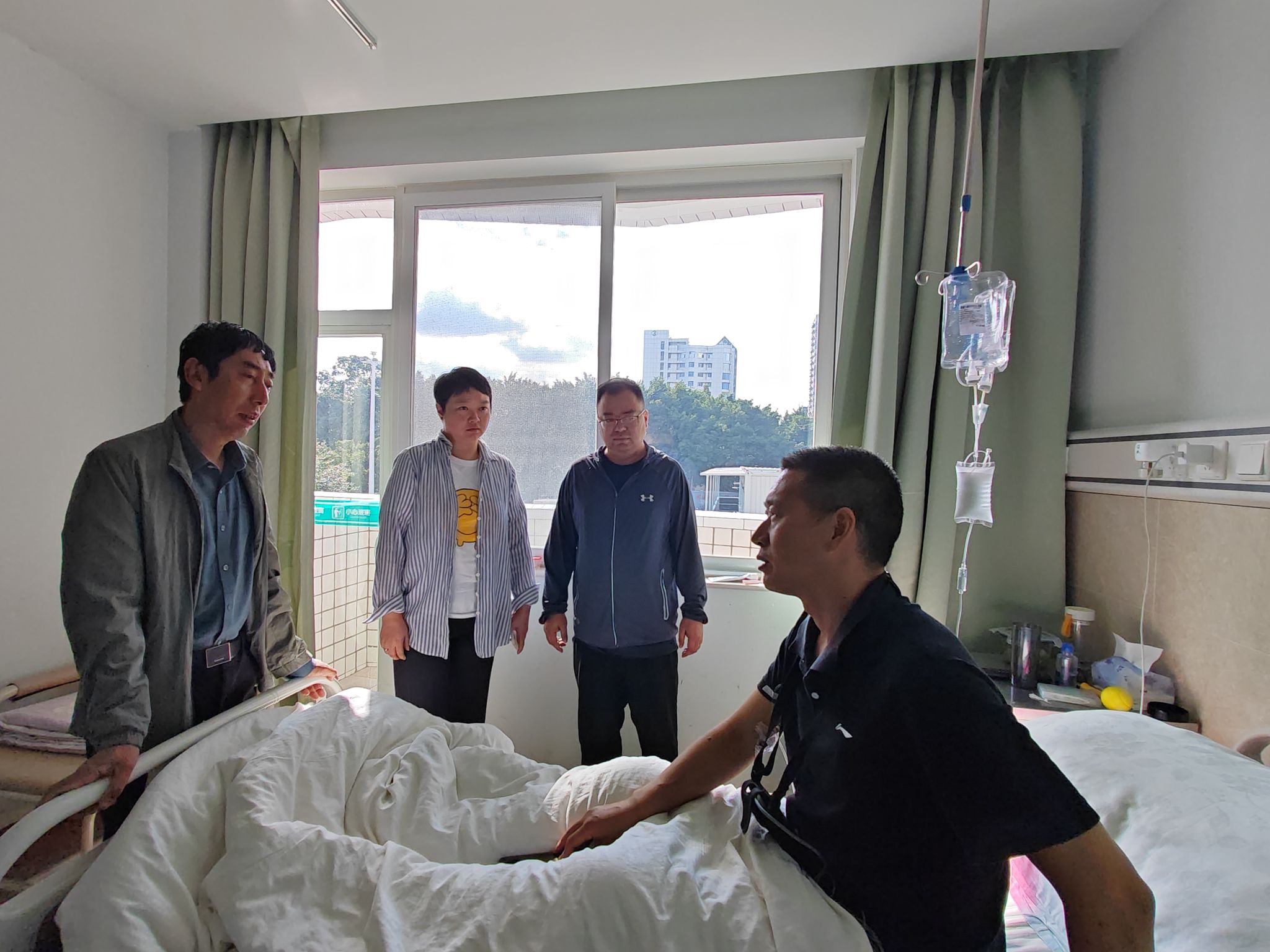 10月7日下午,动物医学院党委书记、工会主席贾仁勇,工会副主席叶刚,学院行政办主任沈蕾及教职工代表龚杰,专程前往医院看望生病住院的施飞老师。