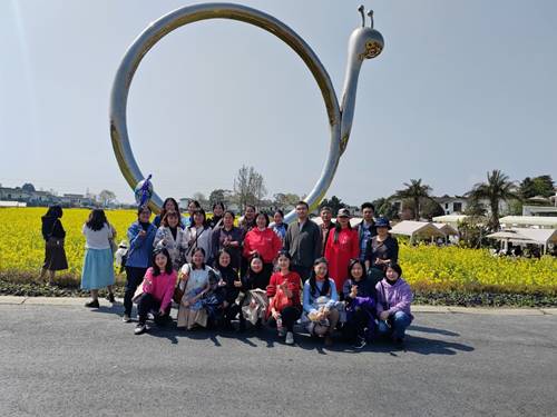3月8日,春和日丽,风景园林学院在家女老师在学院工会组织下,赴崇州市白头镇五星村开展郊外春游活动。