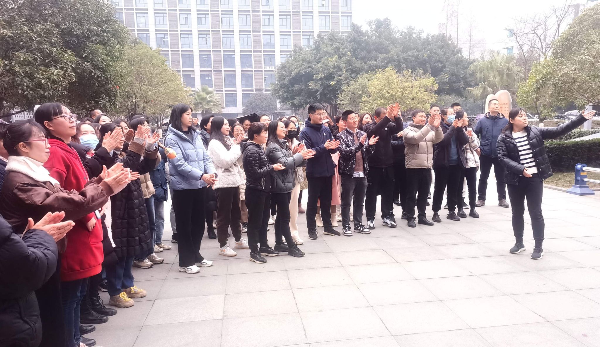 活动在教职工们的合照中拉开序幕,陈舜代表学院发表了热情洋溢的新年贺词。她表示,2023年是我们创造‘第一’、‘唯一’、‘又一’成就的一年,教职工们依然虎虎生威!取得一个一个好成绩!她对大家的努力及去年取得的成绩表示感谢,并激励大家来年继续努力,为学院发展做出更大的成绩。学院工会副主席叶刚宣读了比赛项目和规则,提醒大家要注意安全。随着宋三多的一声令下,比赛活动正式开始。