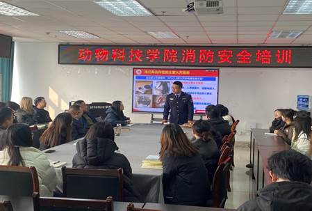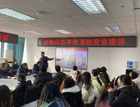 为进一步增强学院师生消防安全意识,普及消防安全知识,12月27日下午,动科院工会举办了消防安全专题知识培训,成都市利民消防宣传中心王诗杰教官应邀主讲,动物科技学院全体教职工,部分研究生代表参加培训。学院党委书记、工会主席何桦主持会议。