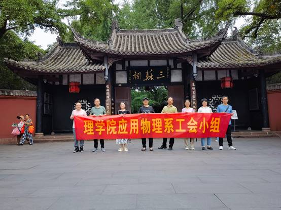 凝心聚力,温暖前行。为缓解教师们的工作压力、增进交流、提高系里教师凝聚力,增强集体荣誉感,建立积极、奋发、团结、和谐的物理系教学科研团队,6月25日,应用物理系工会小组在眉山三苏祠开展了本学期的工会小组活动。物理系教师们追随习近平总书记的脚步,参观了三苏祠的各个展馆,深入了解三苏父子的生平事迹、文学艺术、思想境界和社会影响。通过认真领悟三苏廉政文化、家风家训文化,切实感受和学习了三苏“读书正业、孝慈仁爱、非义不取、为政清廉”的家风精髓,领略三苏家训家风的浩然正气和独特魅力,大家对三苏家风有了更深的理解和认识。