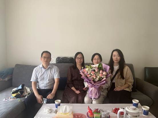 为进一步发挥工会联系职工的桥梁纽带作用,增强职工的凝聚力和幸福感,6月6日下午,马克思主义学院工会主席颜怀坤、学院办公室陈金军、张艳玲、尚爽等工会代表慰问了学院生育女职工孙倩老师,亲切送上领导的关怀、组织的温暖和同事们的祝福。颜怀坤关切询问了孙老师的身体恢复情况和宝宝健康情况,叮嘱她要注意饮食结构、注意休息,调理好身体,祝福宝宝健康成长。孙老师家属对单位给予的关心和慰问非常感动,表达了感谢之情; 孙老师也由衷感谢学院领导及同事们的关心与祝福,同时表示一定尽快休养好身体,照顾好宝宝,重返岗位后,会以更加饱满的热情投入到工作当中,回报单位和工会组织的关怀。