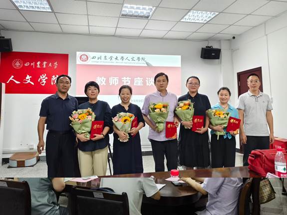 在第40个教师节来临之际,人文学院于9月9日下午在文法楼212召开了教师节座谈会,表彰了2023-2024学年师德师风先进个人,围绕立德树人、师德师风建设和教师发展等方面开展了座谈交流,并向全院教职工致以节日祝福和问候。校工会副主席杨志钢、学院领导班子、学院两委委员、党支部书记、无党派人士、雨城区人大代表、系室主要负责人、专业负责人、工会(教代会)干部、受表彰的先进个人及新进教师参加了座谈会。会议由学院党委副书记、纪委书记、工会主席陈俊霖主持。