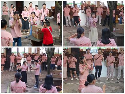 9月10日下午,教师们前往蒙顶山及周边乡村地区,参观了茶叶种植基地,了解了当地的乡村文化与历史,领略了青山绿水的秀美风光,激发了更深的文化认同感与责任感。参观结束后,学院工会安排了轻松有趣的集体游戏,分别是“捉泥鳅”反应大考验、蒙眼转圈弹瓶盖和击鼓传花。整个游戏过程气氛热烈,时而欢声笑语,时而紧张刺激,游戏中老师们也献上了精彩的个人才艺,迎来阵阵掌声。