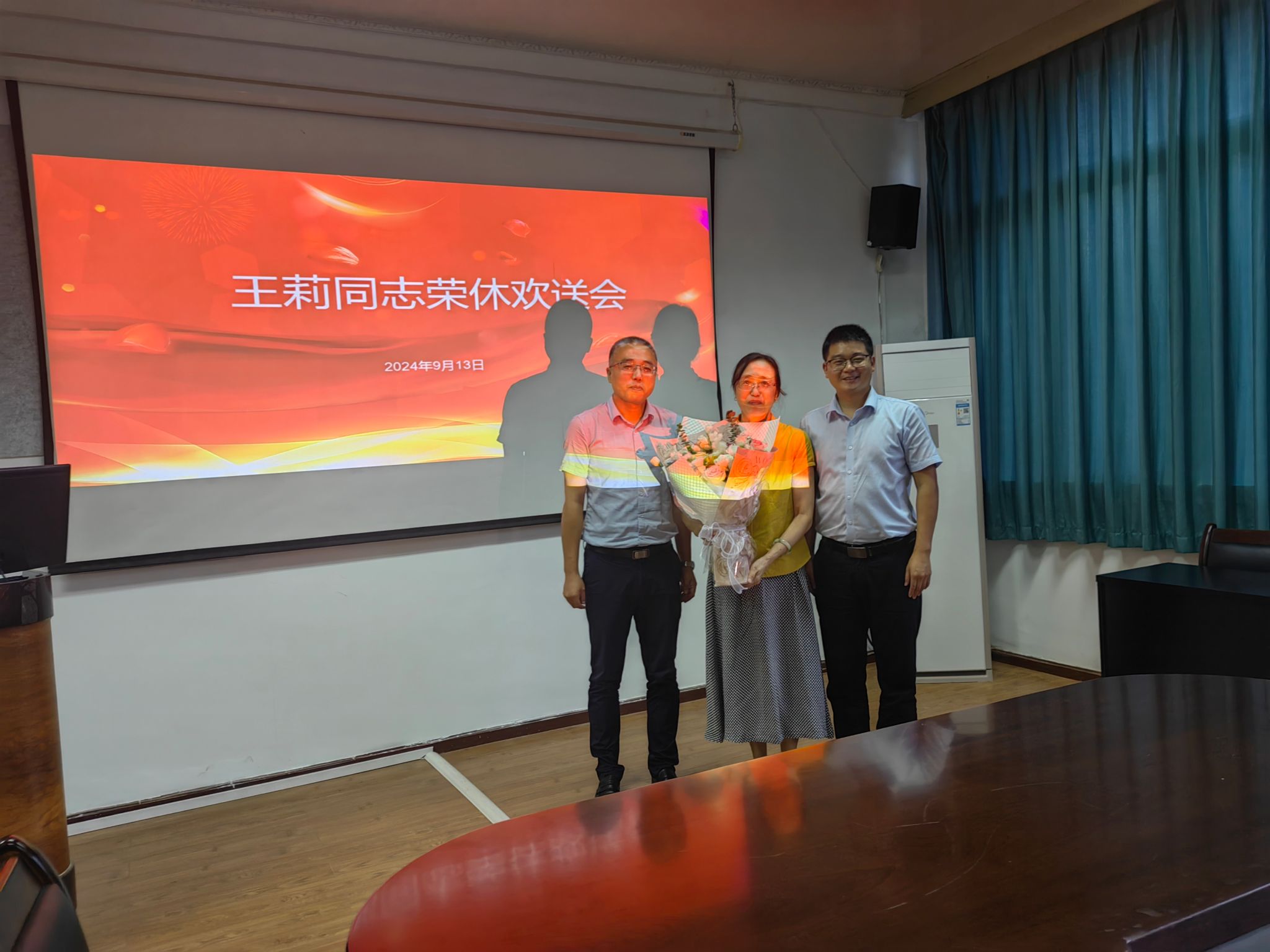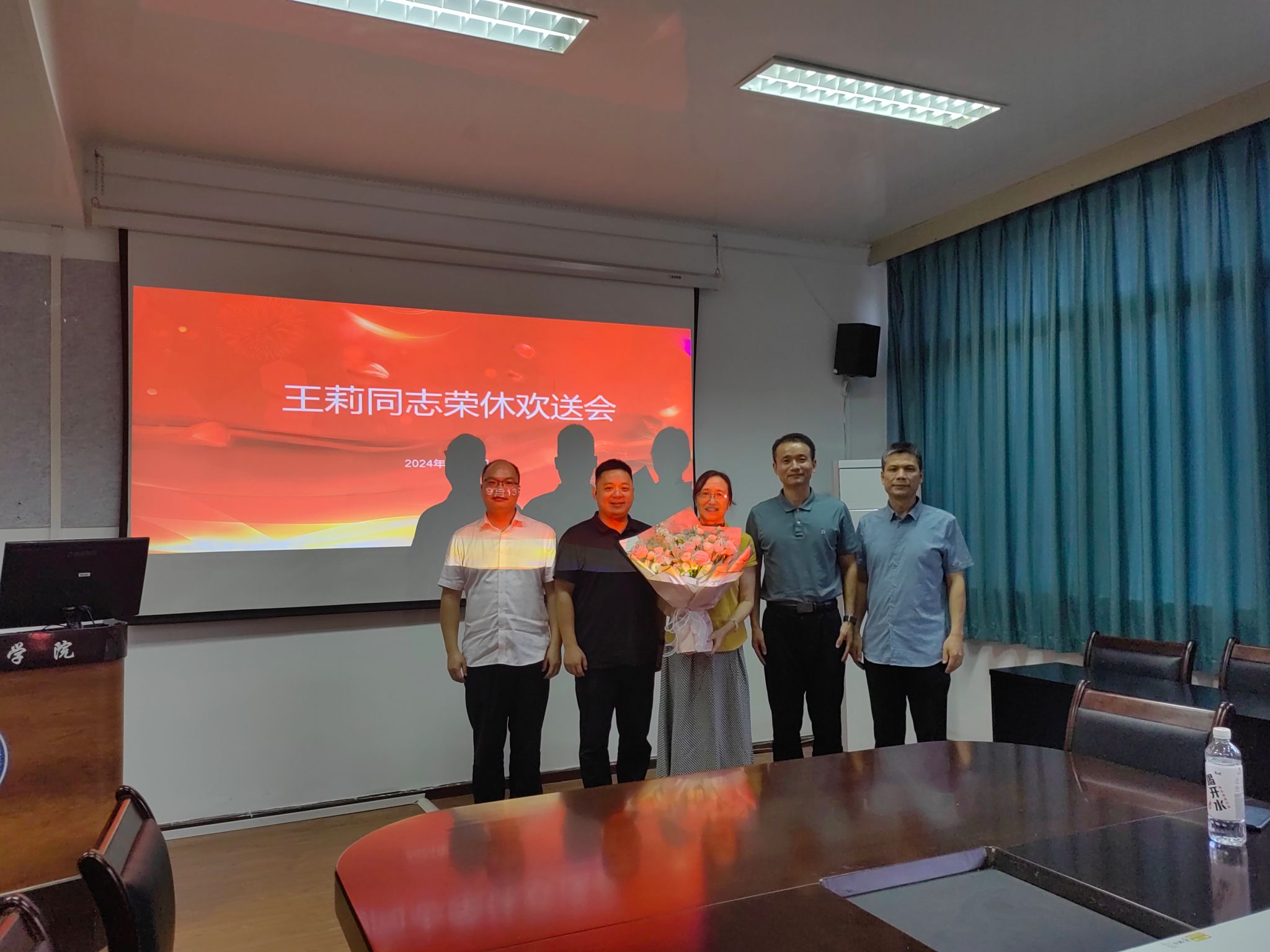 学院领导班子、离退休处和食品学院分别向王莉送上鲜花表示祝福,会后与会人员合影留念。