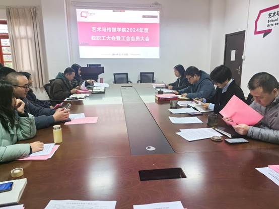 12月23日下午,艺术与传媒学院2024年度教职工大会暨工会会员大会在第四办公楼201会议室隆重召开,学院领导班子全体成员、学院工会委员会全体成员及全体教职工共同出席,会议由学院教代会主席马艳阳主持。