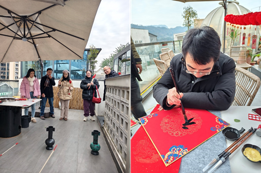 本次活动还设置了猜灯谜、写春联写福字、包饺子等富有年味的游戏,老师们发挥书画特长,写下一个个象征祝福与美好的福字,一副副妙趣横生的春联,赢得现场老师们的点赞与收藏。