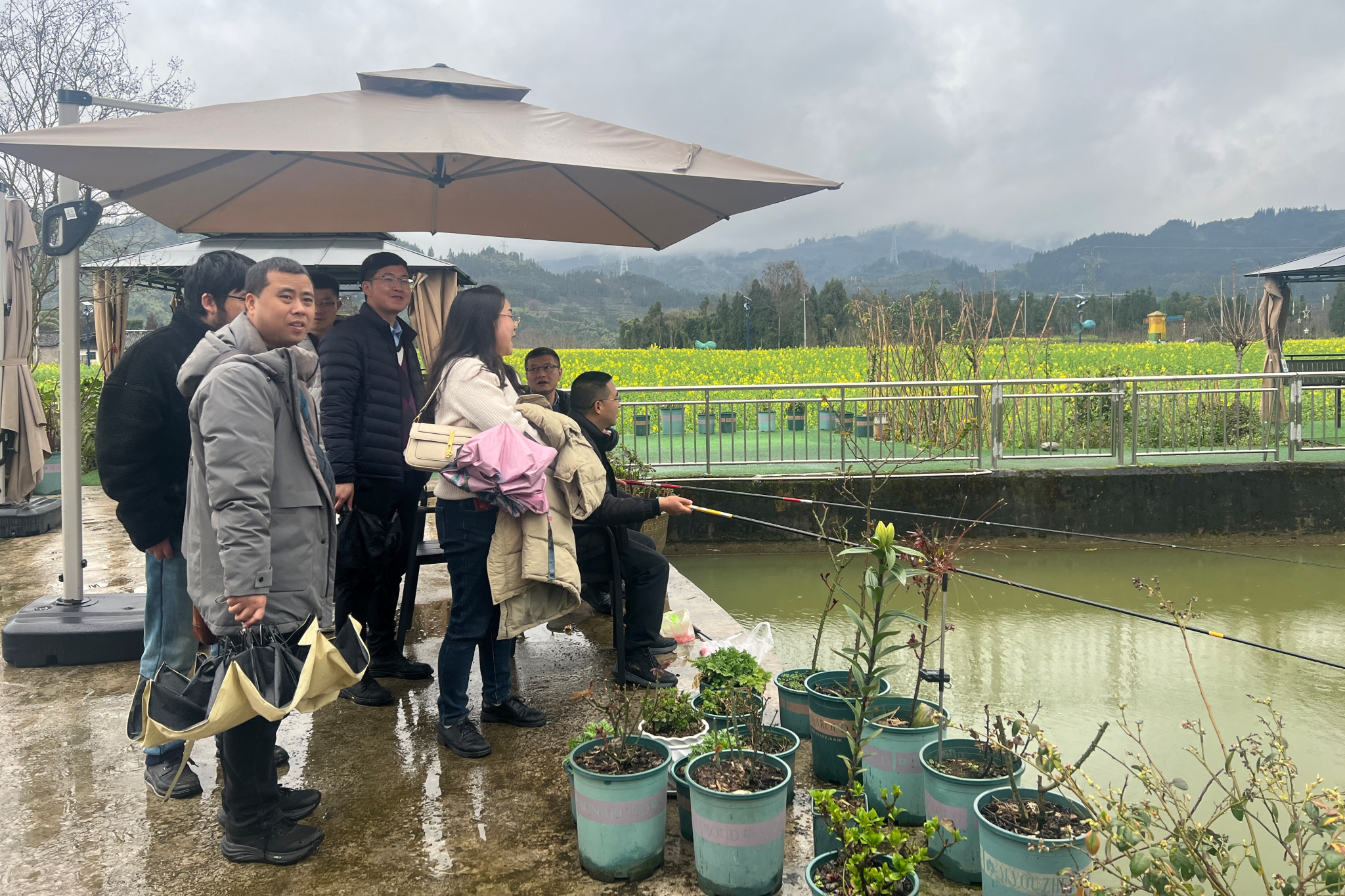 午后,活动进入轻松惬意的田园体验环节。垂钓池畔,教师们凝神静气,尽享“愿者上钩”的悠然;草莓园内,红果绿叶相映成趣,采摘声与笑语交织成歌。更有教师围坐品茗,畅谈生活点滴,情谊在互动中悄然升温。