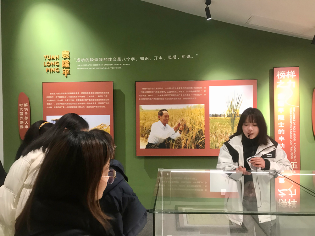 活动开始时,教职工们在讲解员的带领下参观了袁隆平杂交水稻科技馆,深入了解了袁隆平院士的生平事迹及其在杂交水稻领域的卓越贡献。袁隆平院士作为“共和国勋章”获得者、中国工程院院士,被誉为“杂交水稻之父”,他一生致力于解决粮食安全问题,提出了“禾下乘凉梦”和“杂交水稻覆盖全球梦”两大宏愿,并通过不懈努力和科技创新,成功实现了水稻杂种优势的利用,为全球粮食安全作出了巨大贡献。工会委员胡晓表示,袁老胸怀祖国、心系人民,一生为解决十几亿人的吃饭问题百折不挠、潜心攻关,他的精神令人感佩、催人奋进。