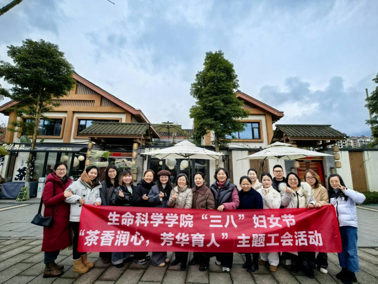 为庆祝第114个“三八”国际劳动妇女节,3月7日,生命科学学院工会组织女教职工赴名山茶语溪、开展主题工会活动,通过茶文化体验、山野徒步赏花相结合的形式,为女教职工送上节日关怀,展现巾帼风采。