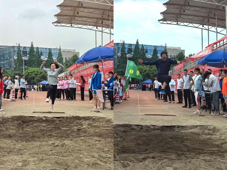 男子跳远比赛现场气氛紧张而热烈,程章老师站在起跑线上,目光坚定,他深吸一口气,助跑、加速、起跳,一系列动作连贯而流畅,最终以4.42米的成绩获得第四名。而在女子跳远比赛中,彭宏老师身姿矫健,凭借着扎实的基本功和出色的临场发挥,跳出了3.17米的好成绩,获得了第五名的成绩。两位老师在起跳瞬间,都展现出了对自我极限的无畏挑战和对胜利的炽热渴望,他们用行动诠释了“更高、更快、更强”的体育追求。