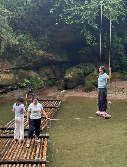 活动当日,忘忧小院景色宜人,青山环抱,流水潺潺。行政工会成员们暂别繁忙的工作,全身心投入到这场惬意的户外之旅中。大家围坐在一起,畅谈工作感悟,分享生活趣事,欢声笑语此起彼伏。此外,成员们还积极参与丰富的水上项目,在秋千上尽情欢笑,在竹筏上协作划行,于青山绿水间逃离城市喧嚣,与大自然亲密接触。