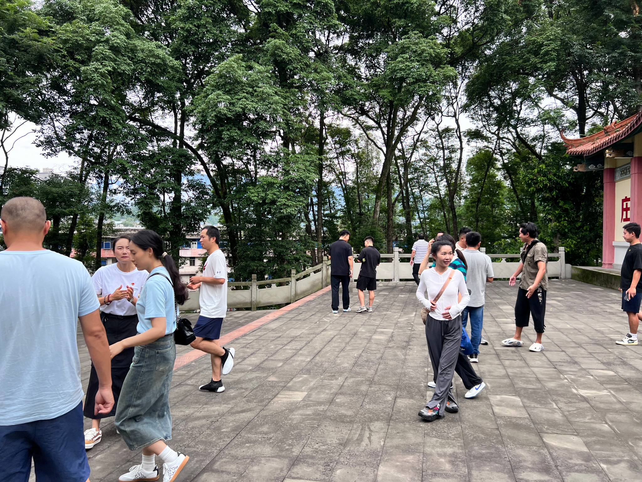 在庄严肃穆的氛围中感受精神洗礼后,工会随即组织了“轻徒步·强体魄”活动。教职工们沿着陵园生态步道行进,沐浴清风,穿梭于葱郁林间,畅谈教学心得与生活感悟。工会特别设计的“自然寻踪”互动任务,引导大家在协作观察植被、地形中深化交流,现场笑语声与鸟鸣交织,气氛融洽热烈。