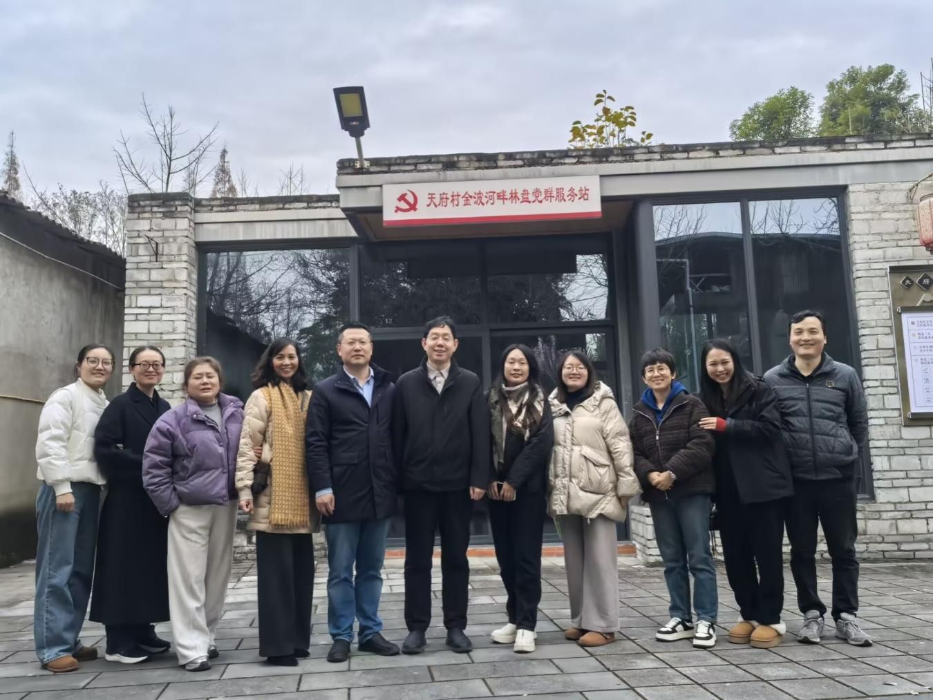 活动中,教职工们深入参观了以梅花文化、五福理念为核心的乡村主题公园,亲身感受乡村振兴战略下的新农村风貌与人文景观。大家漫步田园,交流畅谈,在轻松愉快的氛围中舒缓工作压力,增进团队情谊。全体人员赴公园所在的天府村金波河畔林盘党群服务站参观学习,并在站前合影留念,记录下这次充满意义的活动瞬间。
