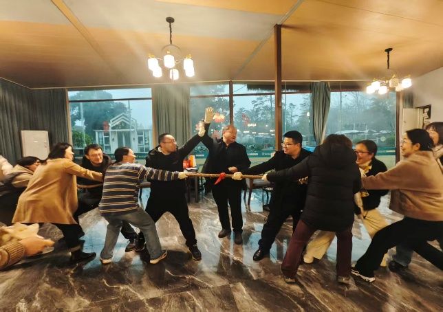 本次活动以“丰收迎新·团圆游园——弘扬农学精神,共享丰收喜悦”为主题,分为游园活动、棋牌交流与团圆晚餐三个环节。现场共设置六项趣味与农学特色相结合的游戏项目:“禾下乘凉梦”模拟插秧,考验细心与速度;“颗粒归仓”粮袋搬运接力,彰显协作精神;“智慧播种”农学版你画我猜,生动展现专业词汇;“丰收投篮”趣味投球,轻松愉悦;“福满田园”蒙眼摸福,传递新年吉祥;“同心协力”拔河友谊赛则将气氛推向高潮,各工会小组齐心协力、呐喊助威,展现出昂扬的团队风貌。游园活动后,教职工们在棋牌交流区自由参与扑克、象棋、围棋等项目,轻松互动、畅叙情谊。抽奖环节将现场气氛推向高潮,奖项设置三等奖、二等奖和一等奖,惊喜连连、欢声不断,充分体现学院工会对教职工的关心关爱与新年祝福。活动过程中,院领导班子全体成员亲临现场,与教职工们一起参与互动游戏,表达了对大家的关心与慰问。活动最后,大家共进晚餐,在温馨愉悦的氛围中总结回顾、展望新年。