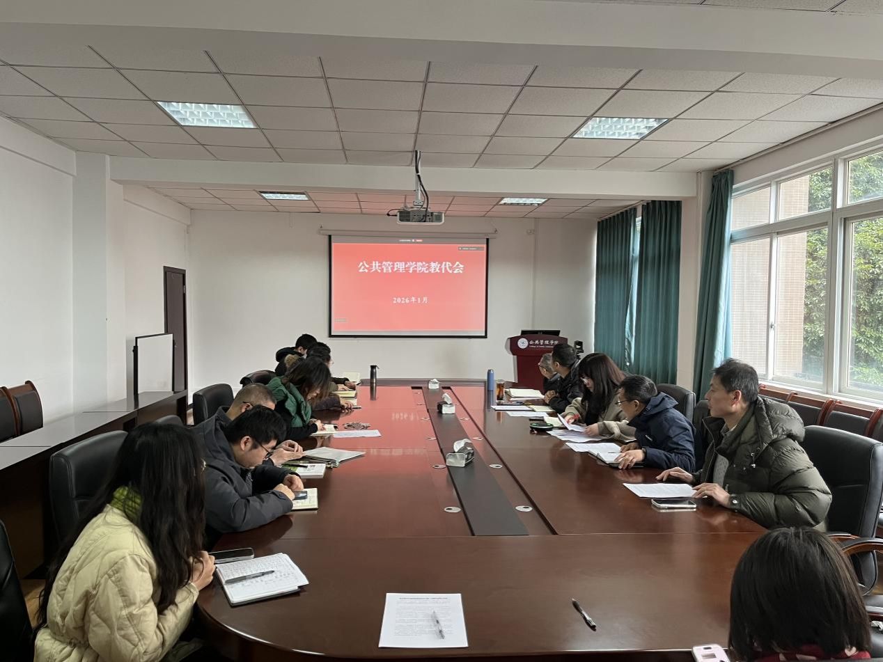 2026年1月6日,公共管理学院2025年教职工代表大会在学院7-312会议室召开。学院领导班子成员、全体职工参加会议,大会由学院教代会主席张劲松同志主持。