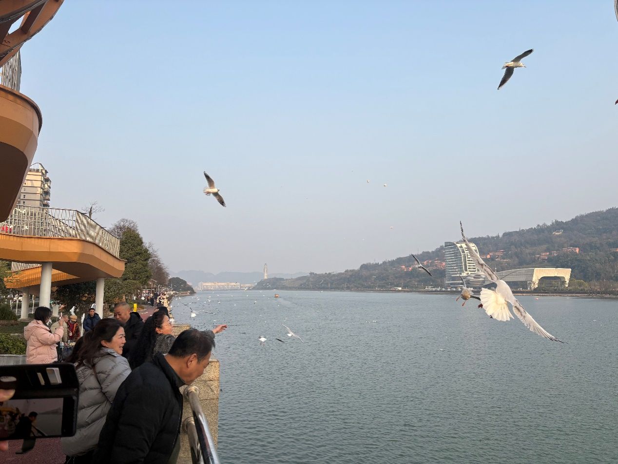 冬阳煦暖,碧波漾金。1月16日下午,教务处分工会组织开展的“暖心度新春·凝心聚力谱新篇”主题工会活动在风景如画的青衣江畔率先展开。结束了一年辛勤教务服务工作的职工们暂别案牍,漫步江边步道,沐浴午后和煦阳光。江面上,成群的红嘴鸥翩跹飞舞,宛如洁白的精灵。大家轻轻抛洒海鸥喜欢的面包虫、馒头等,看鸟儿轻盈啄食,欢声笑语与鸥鸟鸣叫相和,疲惫在自然怀抱中悄然消融。“忙了一整年,出来走走看看,心情特别舒畅。”一位职工笑着说道。这份精心安排,体现了教务处工会对职工身心健康细致入微的关怀。