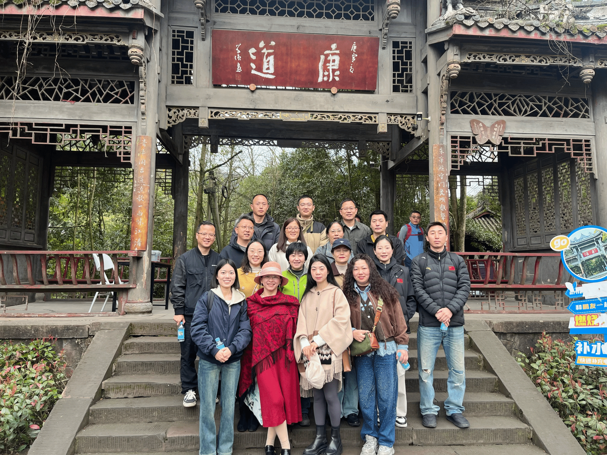 活动当天,全体教师在工会工作人员引导下,先前往街子古镇康道漫步,呼吸新鲜空气,舒展身心,在山间步道中感受自然之美。随后,大家走进街子古镇,沿着青石板古街前行,欣赏川西民居风貌,感受古镇的古朴韵味与烟火气息。游览过程中,教师们三五成群、欢声笑语,相互交流、合影留念,褪去了工作的疲惫,增进了彼此的情谊。大家纷纷表示,此次走康道、游古镇的活动,既放松了心情,又感受到了工会的关怀。