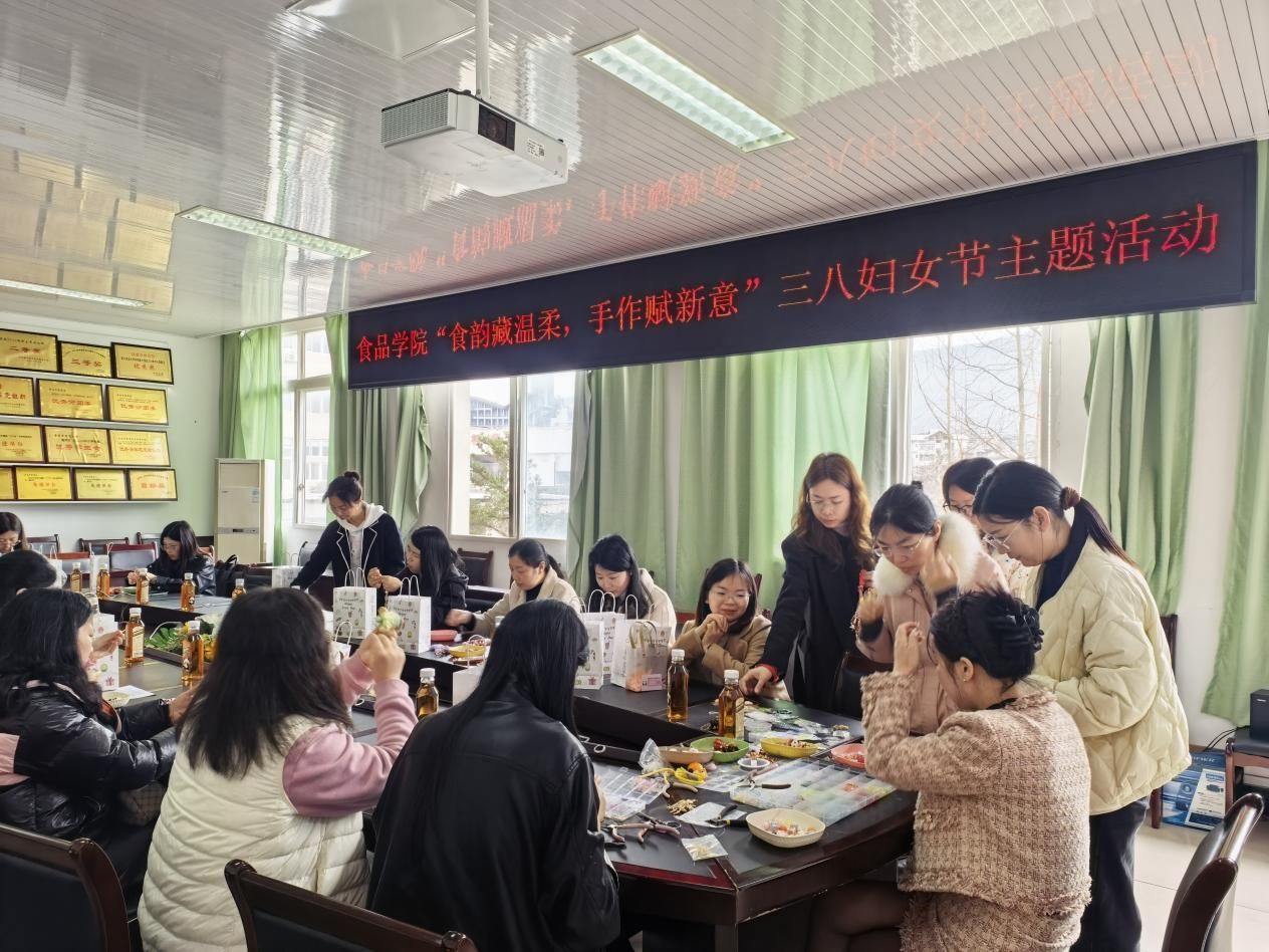 为庆祝三八国际妇女节,丰富女教师精神文化生活,展现学院对女教职工的关怀与温暖,3月6日上午,食品学院在3教206会议室,联合雅安盼哒潮玩工作室开展“食韵藏温柔,手作赋新意”三八妇女节主题活动,全院女教师共同参与DIY手机配件创作。