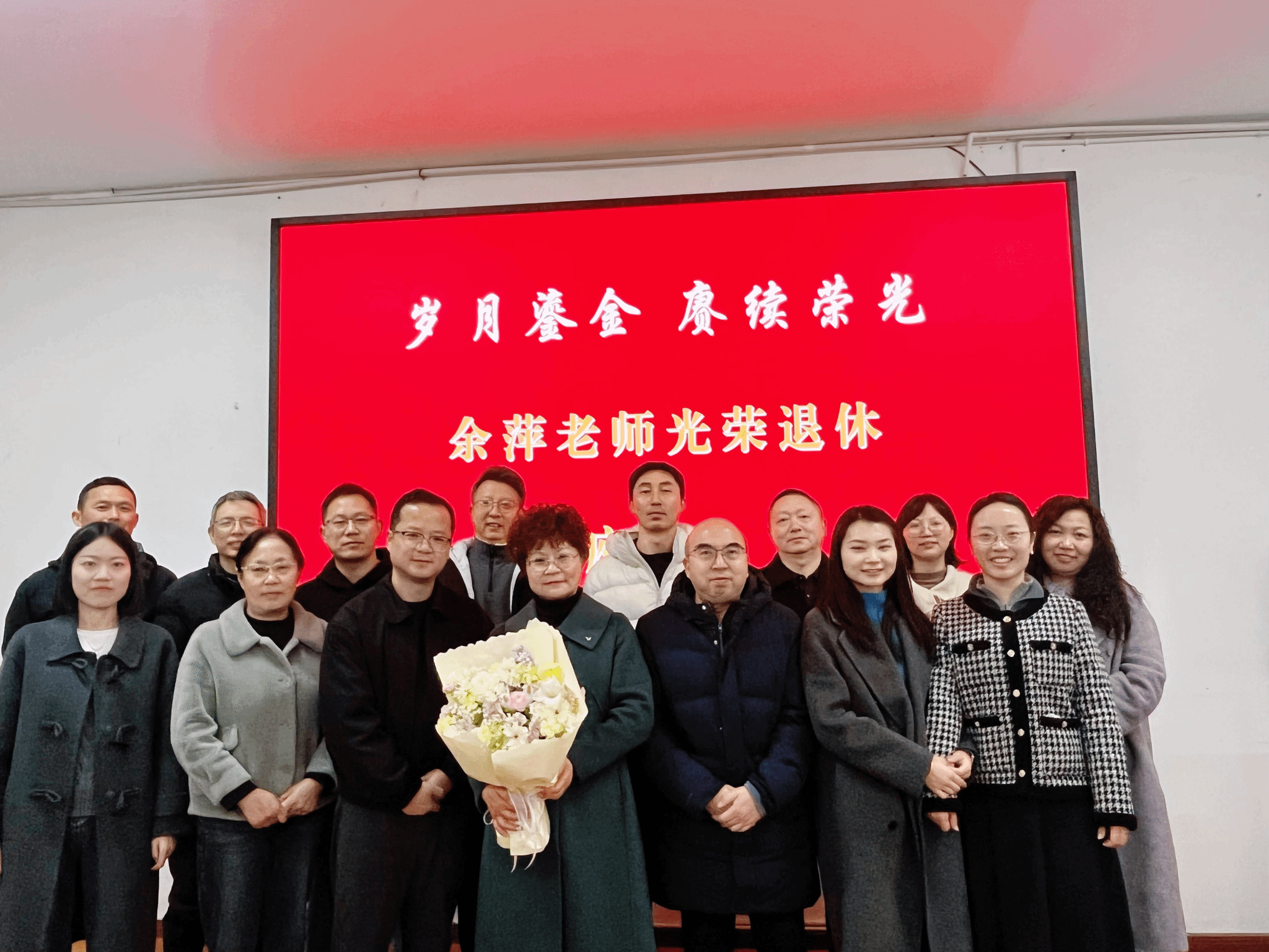 欢送会上,暖意融融、氛围热烈。部门领导首先代表全体教职工,向余萍老师致以最崇高的敬意和最美好的祝福。领导充分肯定了余萍老师三十八年来在教学岗位上的坚守与担当,高度赞扬她治学严谨、业务精湛、爱岗敬业的职业精神,以及对基础教学工作的倾心付出与卓越贡献。余萍老师以扎实的专业素养、勤恳的工作作风、宽厚的待人态度,为部门青年教师树立了学习榜样,为基础教学部的发展倾注了大量心血。随后,领导为余萍老师献上鲜花与纪念礼品,定格这份真挚情谊。