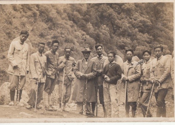图:佘耀彤(中间着大衣者)带领师生森林考察。