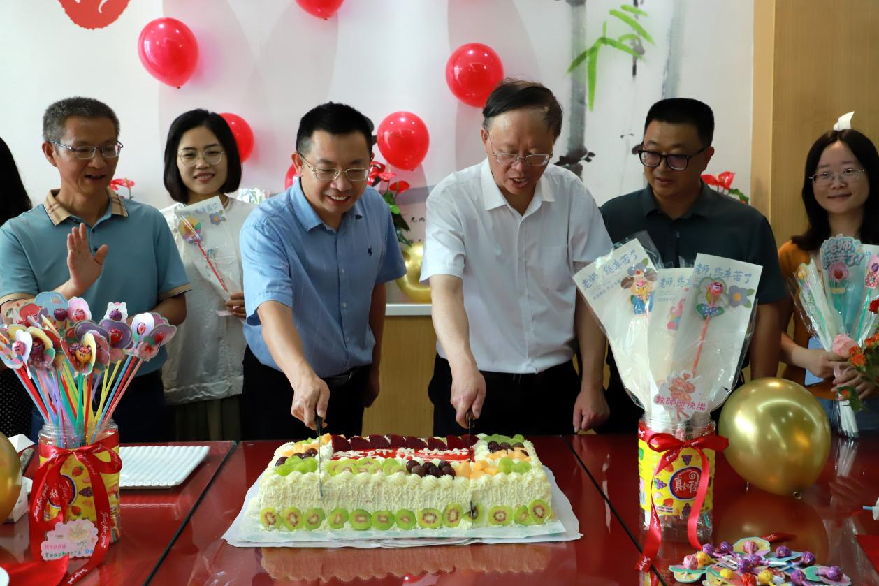 午餐时段,三校区教工餐厅暖意浓浓,“同享甜蜜・共话师恩”蛋糕分享活动成焦点。各校区定制的感恩蛋糕格外吸睛,奶油勾勒“师泽如光・健康同行”主题,芒果片制“桃”、蓝莓拼“李”的“桃李”造型,寓意教职工耕耘硕果。