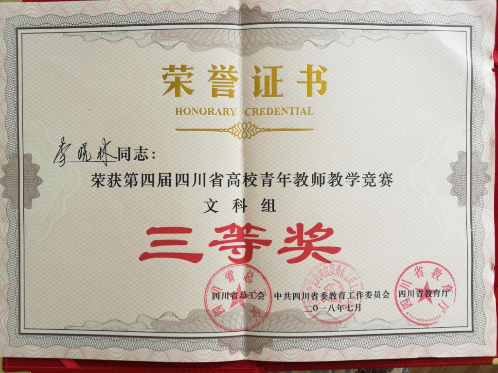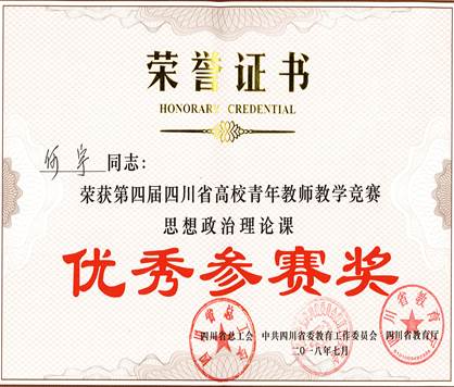 我校于2018年7月5日至7日参加了由四川省总工会、四川省委教育工委和四川省教育厅联合主办,西南科技大学承办的第四届四川省高校青年教师教学竞赛决赛。其中商学院李晓林老师(文科组)、园艺学院罗娅老师(工科组)、马克思主义学院何宇老师(思想政治理论课组)分别通过预赛进入了决赛。